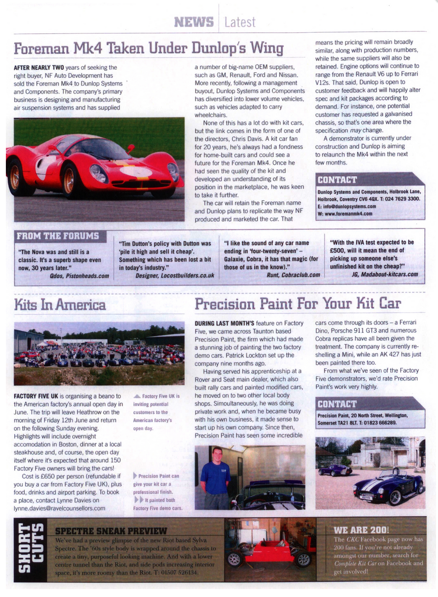 We have had our cars featured in Compete Kit Car Magazine and our work made front page! Article reads: